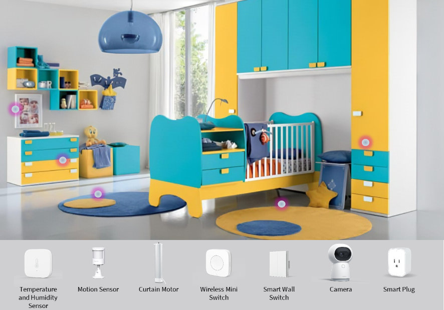 Inductive night lights and child cry detection, which can also play the mother’s voice to soothe the child.