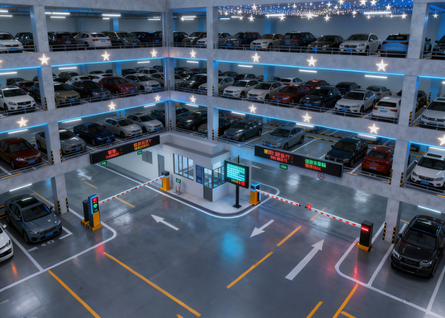 Including license plate recognition all-in-one machine, high-speed barrier gate, self-service payment machine, reverse car search machine, etc., realizing unattended operation, Unattended payment, and fast entry/exit of parking lots.