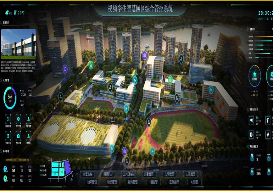 Highly integrate data on the park's industries, investment promotion, security, assets, infrastructure, energy efficiency, and environmental space, conduct comprehensive monitoring and analysis of key indicators, and display the park in 360° layered form in 3D to achieve unified management of people, events, and objects in the park with "one screen control".