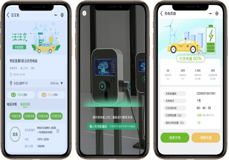 For commercial charging piles, it offers functions such as charging station search, nearby station inquiry, charging pile list viewing, charging operations (scanning codes/entering codes), real-time monitoring of the charging process, and order settlement.