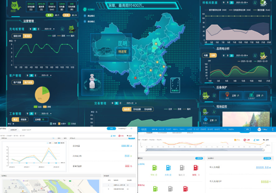 •Data Visualization: Through the dashboard and data panels, core data such as total users, orders, charging duration, electricity volume, and revenue are displayed, along with statistical information including active users and charging pile usage.